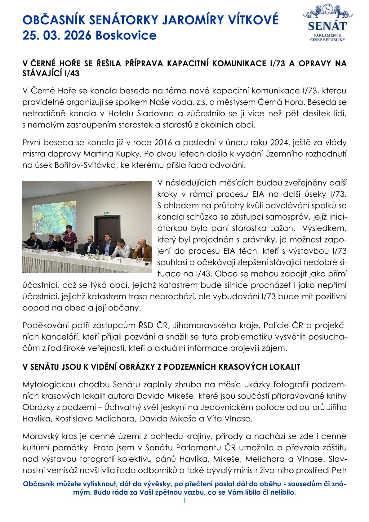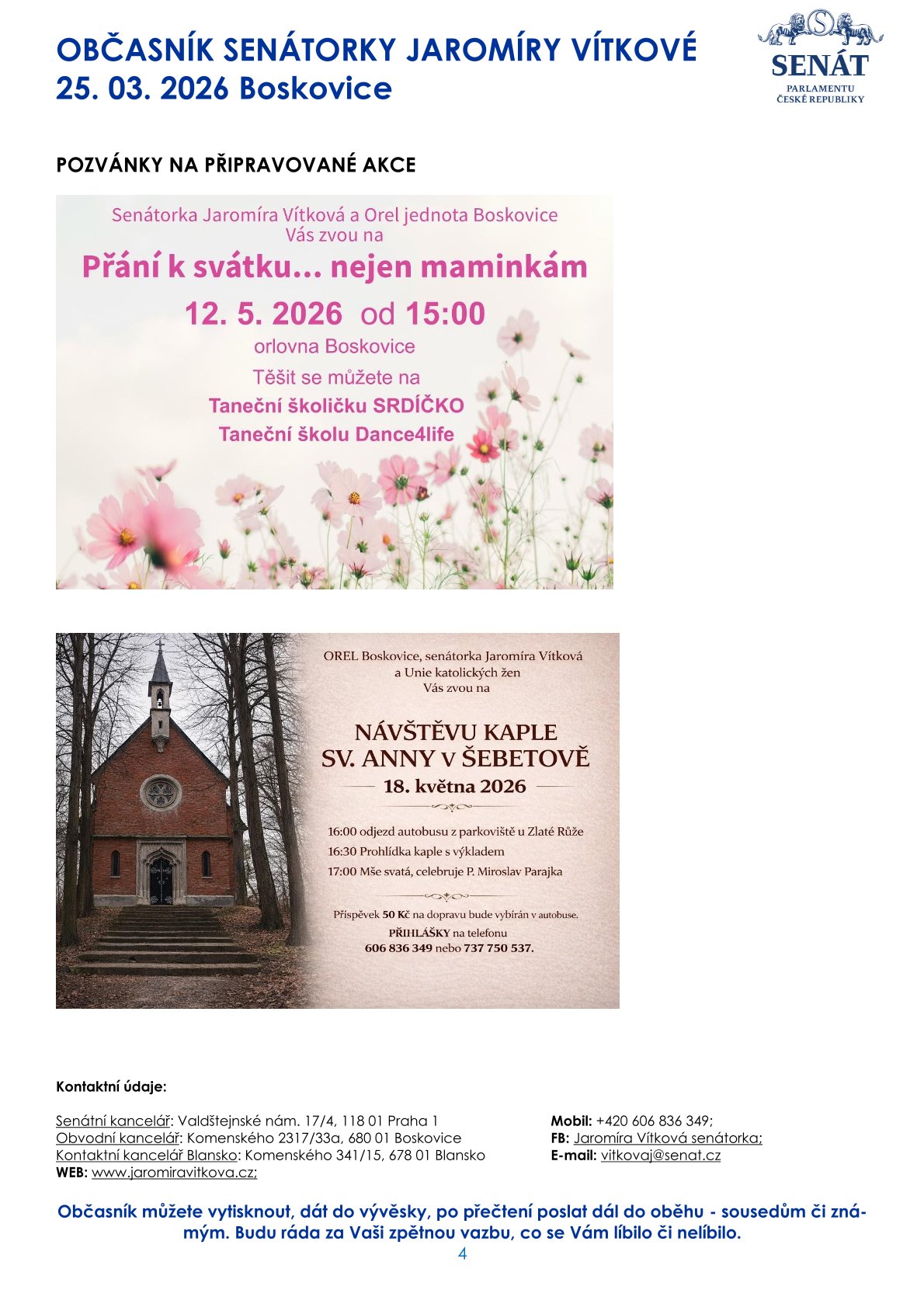 Občasník senátorky Jaromíry Vítkové